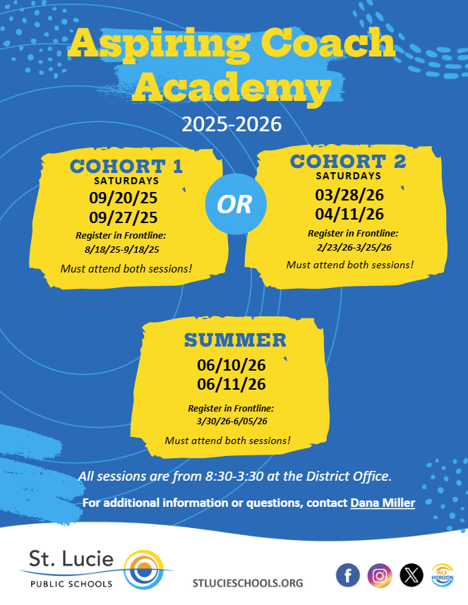 Any teachers looking to apply for the Coaching Pool, besides needing at least 3 years of successful classroom experience as shown through student data and a Highly Effective or Effective rating and appropriate certifications (Reading – Reading Endorsement or Certification; Math – 5-9 or 6-12) must also complete the following professional learning opportunities: